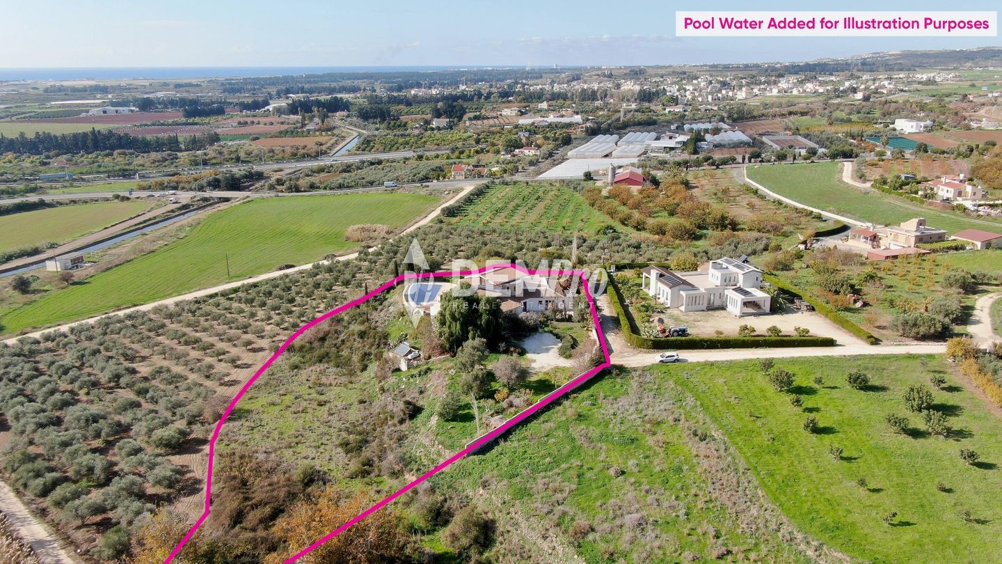 This property embodies luxury living in Cyprus, combining comforts with breathtaking natural scenery. A luxury two storey house enjoying an unobstructed sea view, with basement and a swimming pool ,located in Anarita, Paphos. The ground floor consists of an open plan living room with a dining area and a second living room with a fireplace, a kitchen, guests’ toilet, a laundry room, and three bedrooms of which two are en-suite. The first floor consists of one large bedroom with en-suite bathroom and a walk-in wardrobe. The basement consists of a storage area and boiler room. Externally, there is an uncovered garage, a private swimming pool and a large garden/orchard. The asset is situated about 1.5km south from the community centre, and about 400m northeast of the nearest exit to the Paphos – Limassol Motorway. The property falls within Zone Z1, with a building coefficient of 6%, coverage of 6%, and permission for 2 floors (8.3m) of construction. GPS coordinates: 34.726956 32.533204